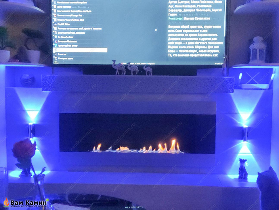 Хозяевам удалось купить недорого биокамин GRAND-H 1500, поскольку эта модель приобреталась со скидкой. При этом не пришлось также тратиться на оборудование дымохода или вытяжки в квартире. С таким аппаратом достаточно только открывать форточку, чтобы проветрить квартиру во время работы прибора. Также покупатели были избавлены хлопот с тем, чтобы получать разрешения на оборудование аппарат в квартире, как это обычно происходит, если устанавливаете прибор на углях или дровах. Единственное только клиенту нужно было нанять рабочего, чтобы качественно установить биокамин в нишу из кирпича.